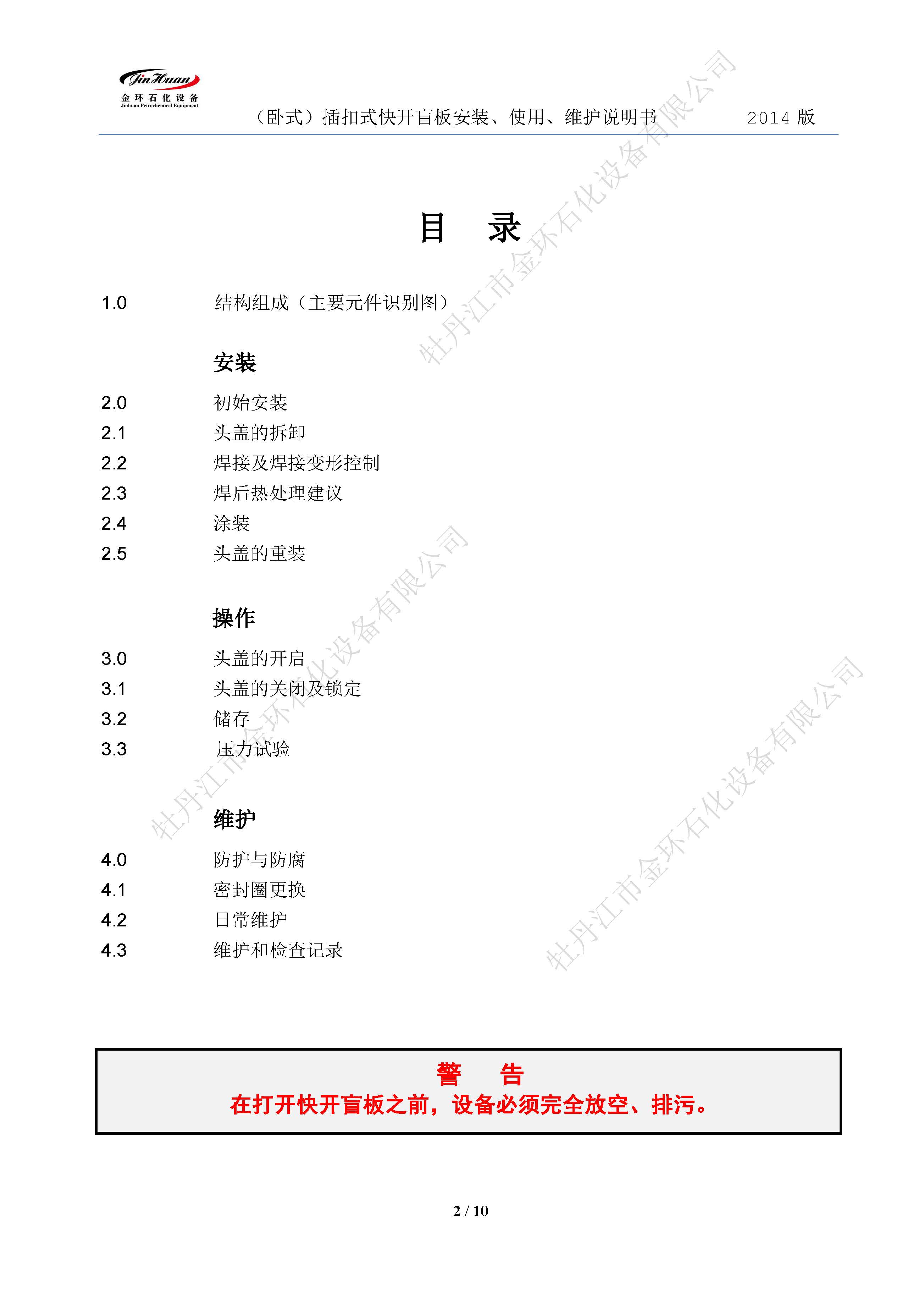 插扣臥式快開盲板說明書