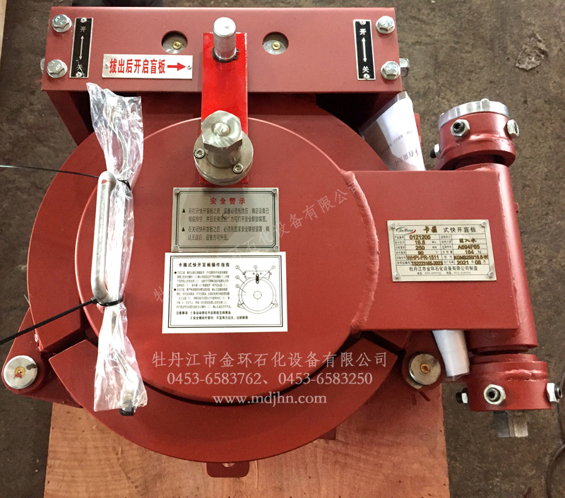 快開盲板是用于壓力管道或壓力容器的圓形開口上的一種機(jī)械裝置。一般由筒體法蘭、頭蓋、勾圈或卡箍、密封圈、安全聯(lián)鎖機(jī)構(gòu)、開閉機(jī)構(gòu)、轉(zhuǎn)臂及短節(jié)(需要時)等部件構(gòu)成。